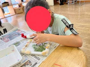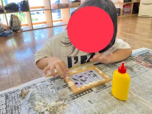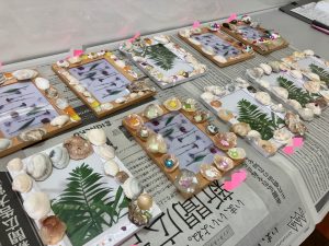 自由に貝殻やビーズを組み合わせていき、個性豊かな写真立ての出来上がり✨