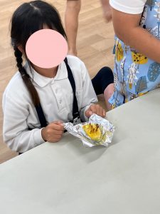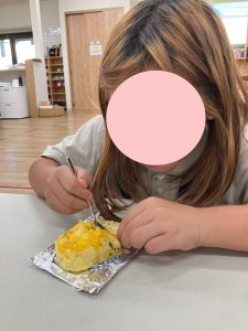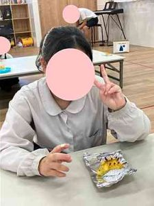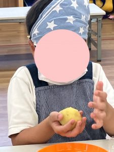 まず、さつま芋でハリネズミスイートポテトを作る話をすると、「わあ、かわいい❤️」「これ、早く作りたい。」「さつまいもで、ハリネズミができるの?」と声があがりました✨