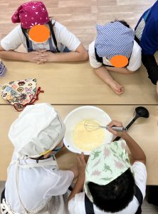 今回、小グループでのクッキングを行ってグループ内で話合って役割を決めることで協調性を育みます。