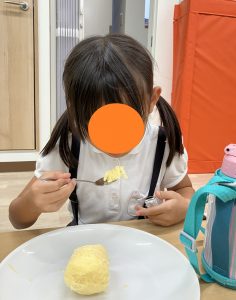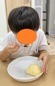 中にはチョコソースやはちみつをかけて食べている子もいました。