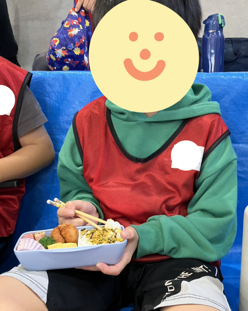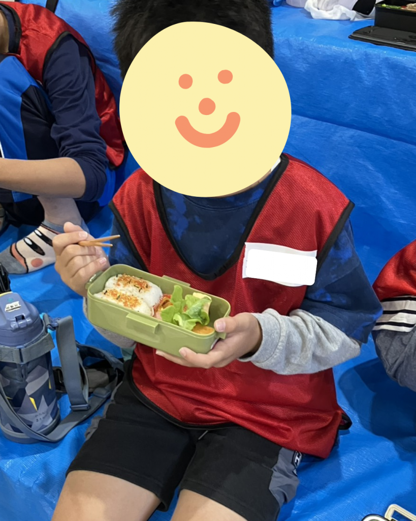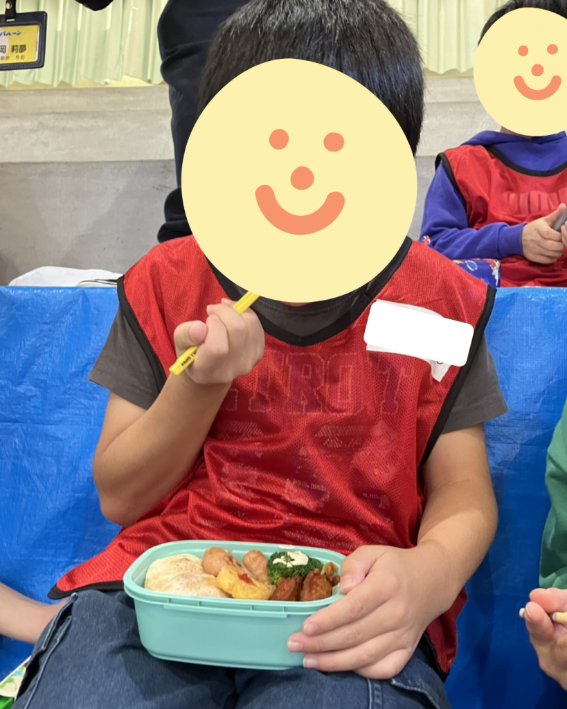 お家の方が作ってくださったおいしいお弁当に笑顔がこぼれ、