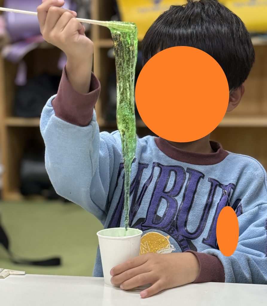 友だちとスライムの伸び具合を比べたり、色やラメの綺麗さを褒め合ったりと、他者との関わりや多様性の気づきにも期待が出来ます。
