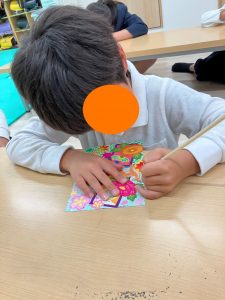 子ども達は自分の好きな絵を選び線をなぞっていきます🖊
