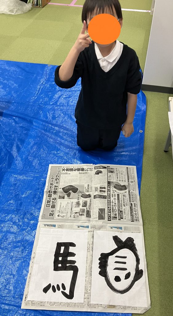 初めて書初めをするお子様もいて最初は「出来るか不安だな」と言っていましたが、スタッフが習字のやり方を説明し、一緒に書いたりしていくうちに自信がつき、完成すると「上手に出来たよ!」と言って笑顔で見せてくれました😊