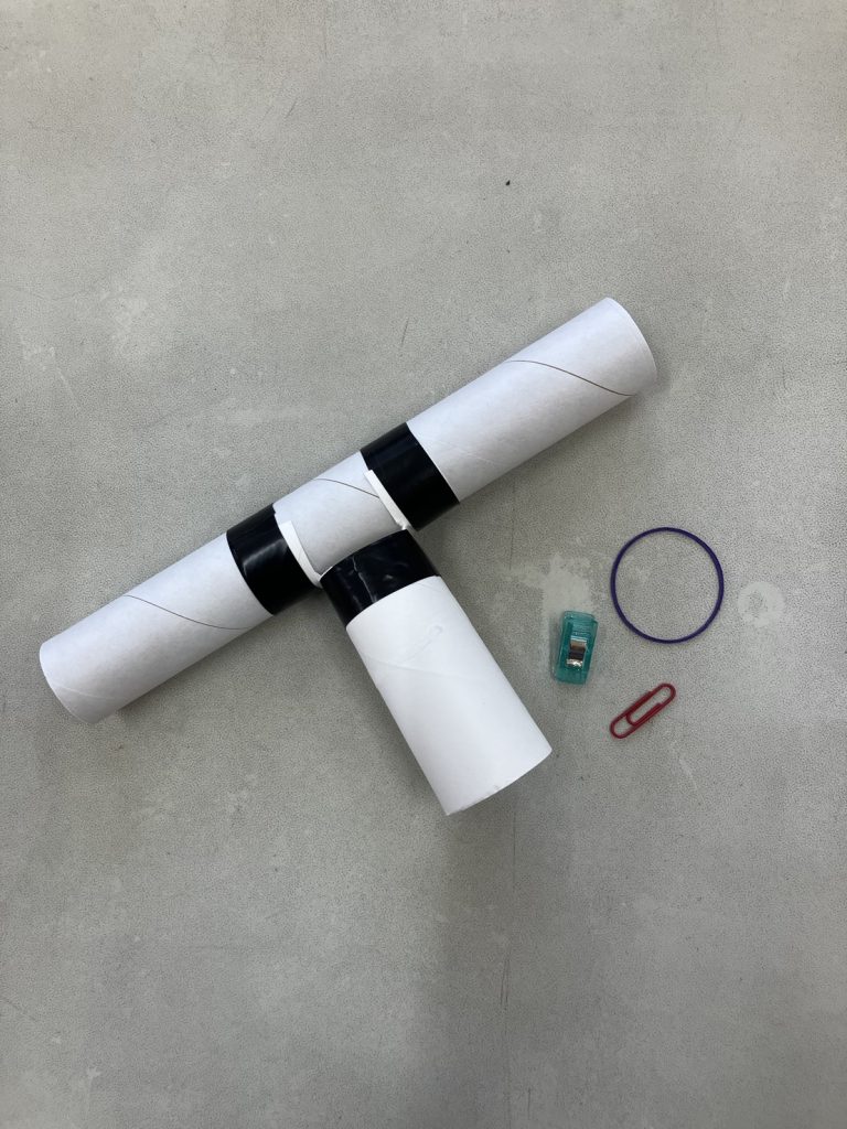 色々な色のクリップやテープを使ってオリジナルの銃を作ります。