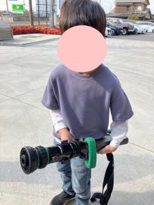 大人が持っても重い道具でしたが、しっかり支えていました🎀
