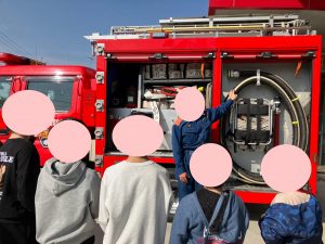大きな車体や長いホース、たくさんの道具にみんなびっくり!