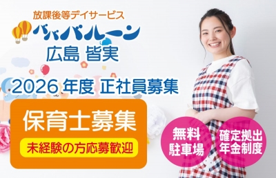 「放課後等デイサービスバババルーン広島皆実店」で保育士(正社員)を募集します。