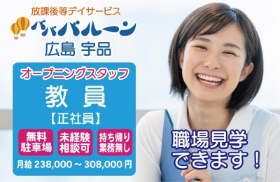2026年4月オープン!「放課後等デイサービスバババルーン広島宇品」の教員(児童指導員)を募集します。